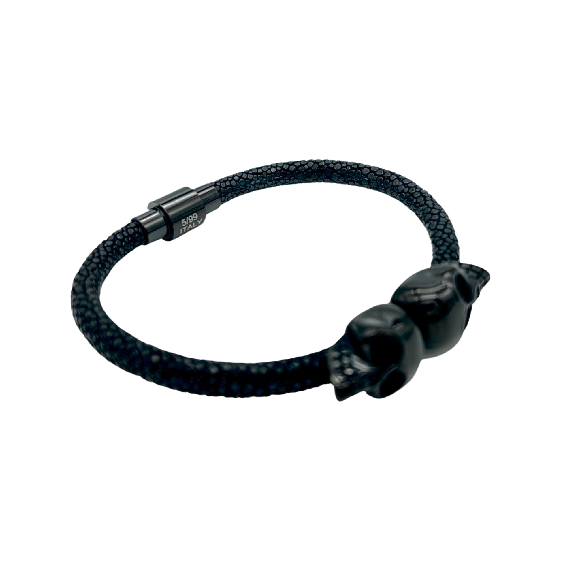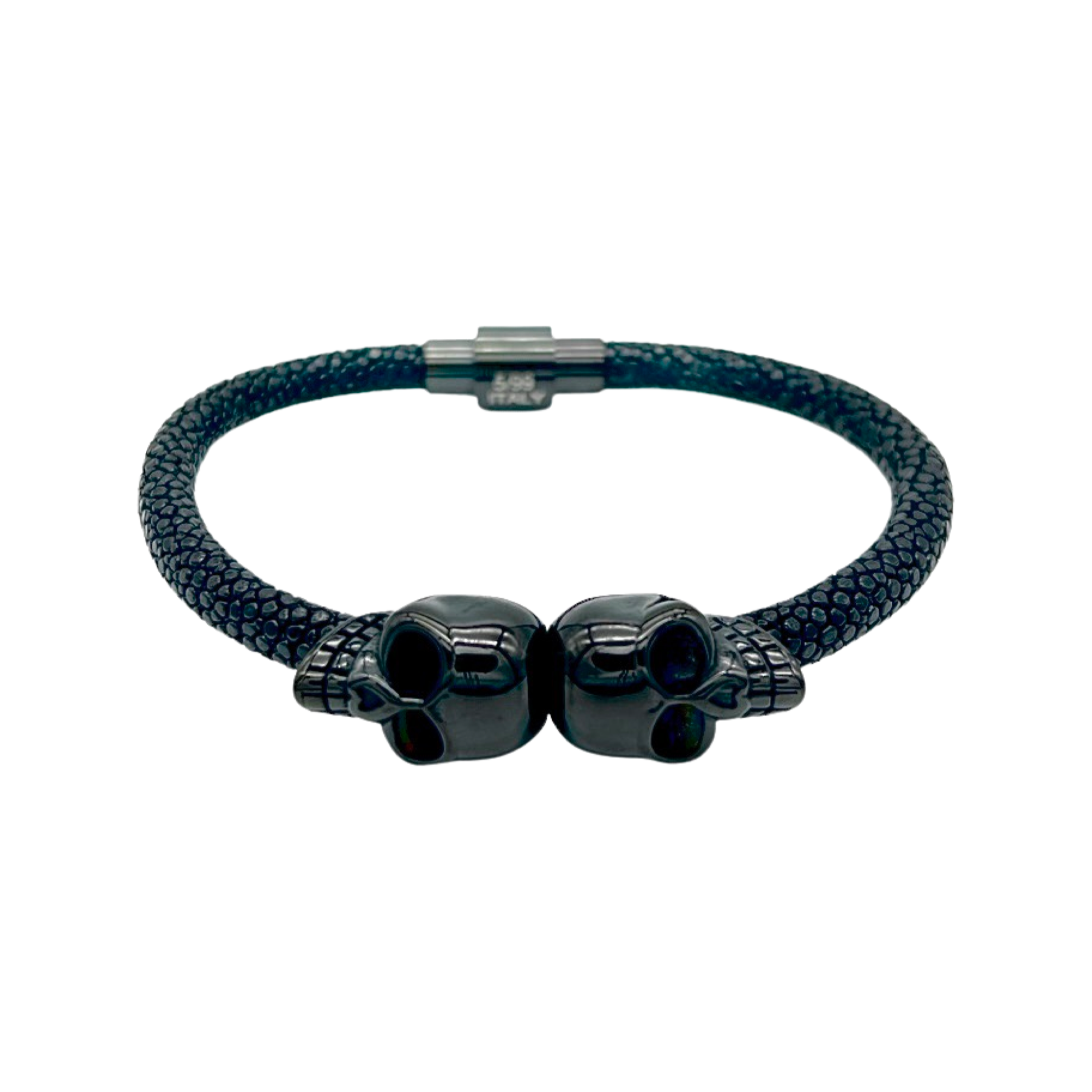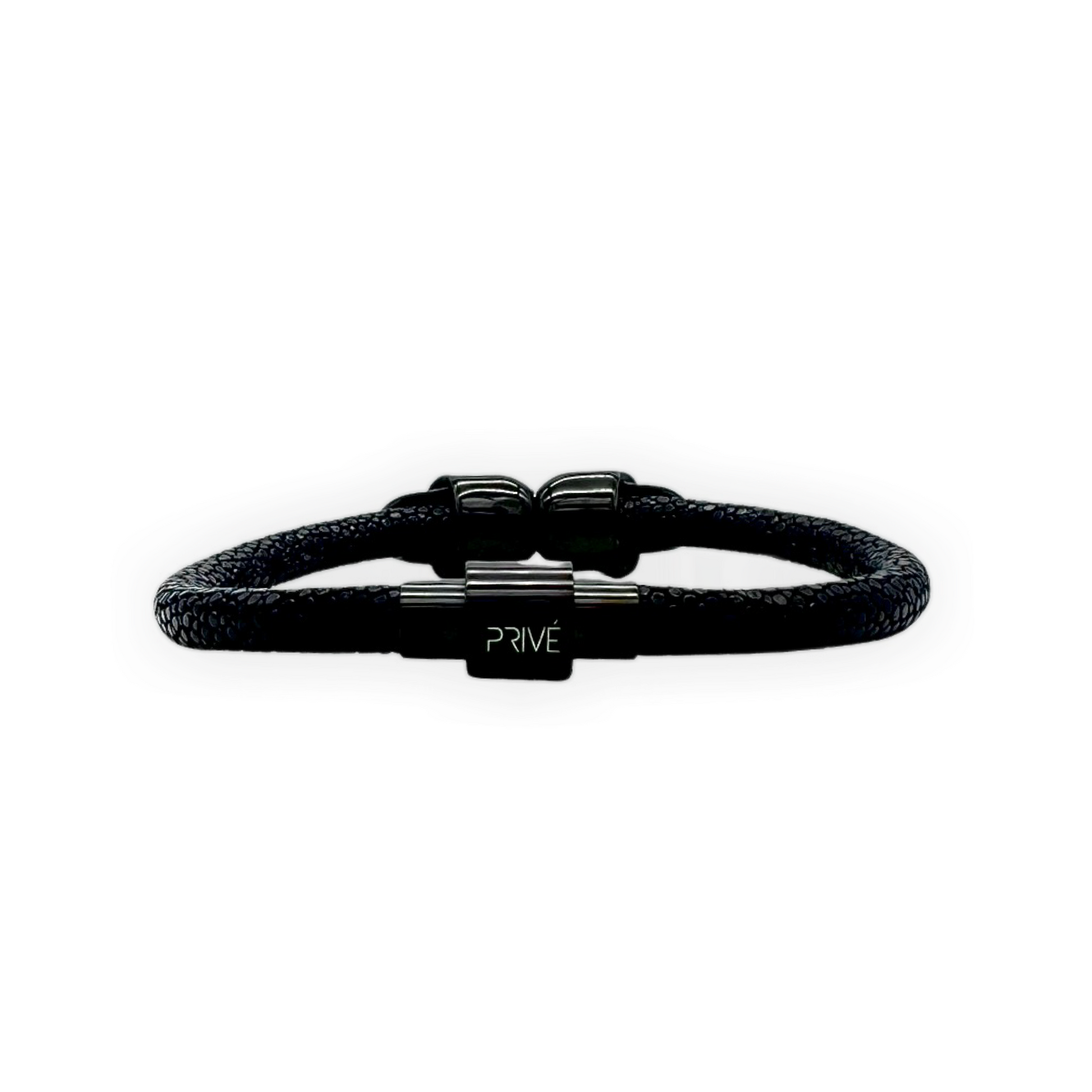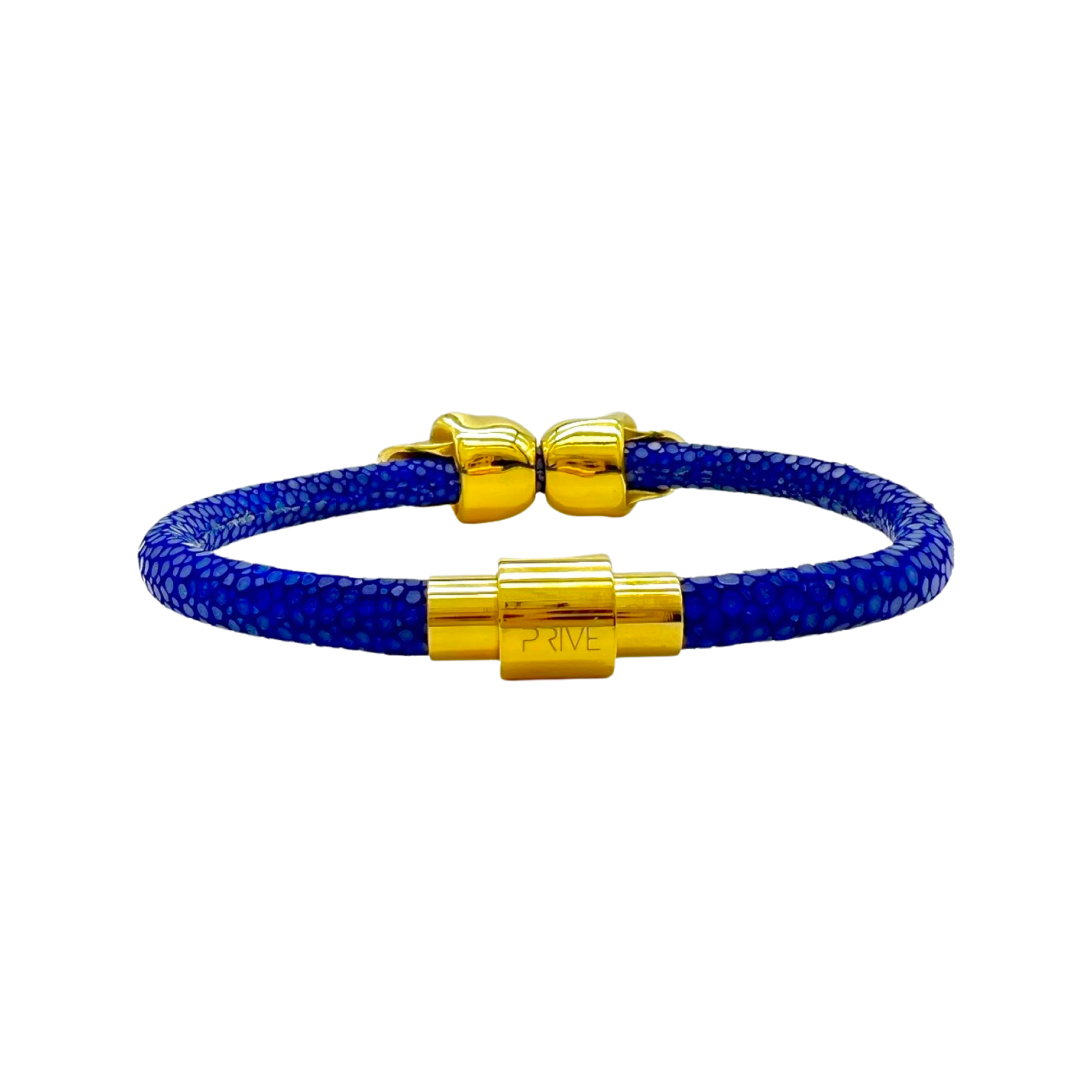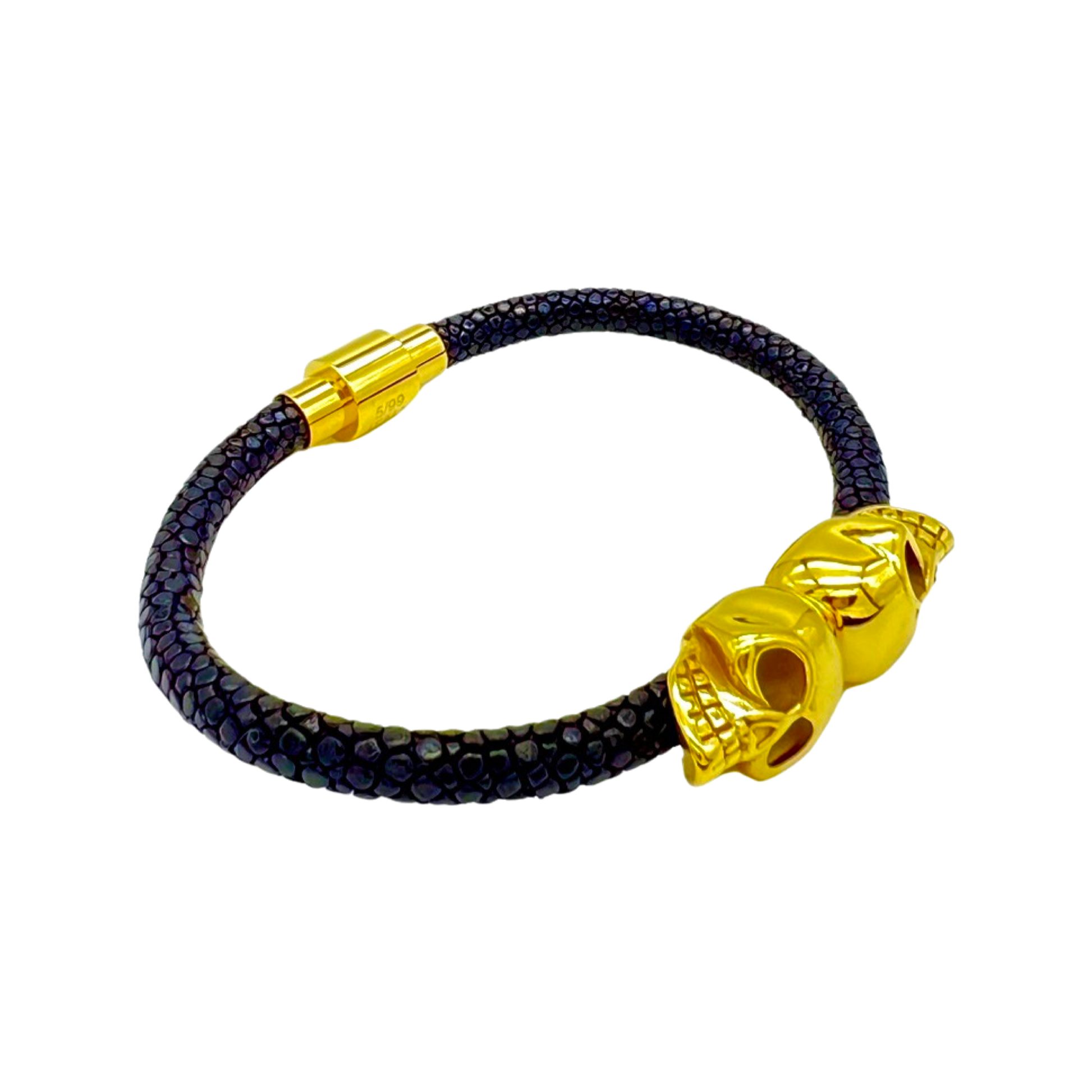 Introducing a rare treasure for your wrist: our exclusive limited edition bracelet, meticulously handcrafted from authentic stingray leather, designed with a convenient magnetic clasp. The bracelet's metal elements are expertly forged from resilient stainless steel, while the gold variant boasts a lavish 18k gold plating that radiates opulence.