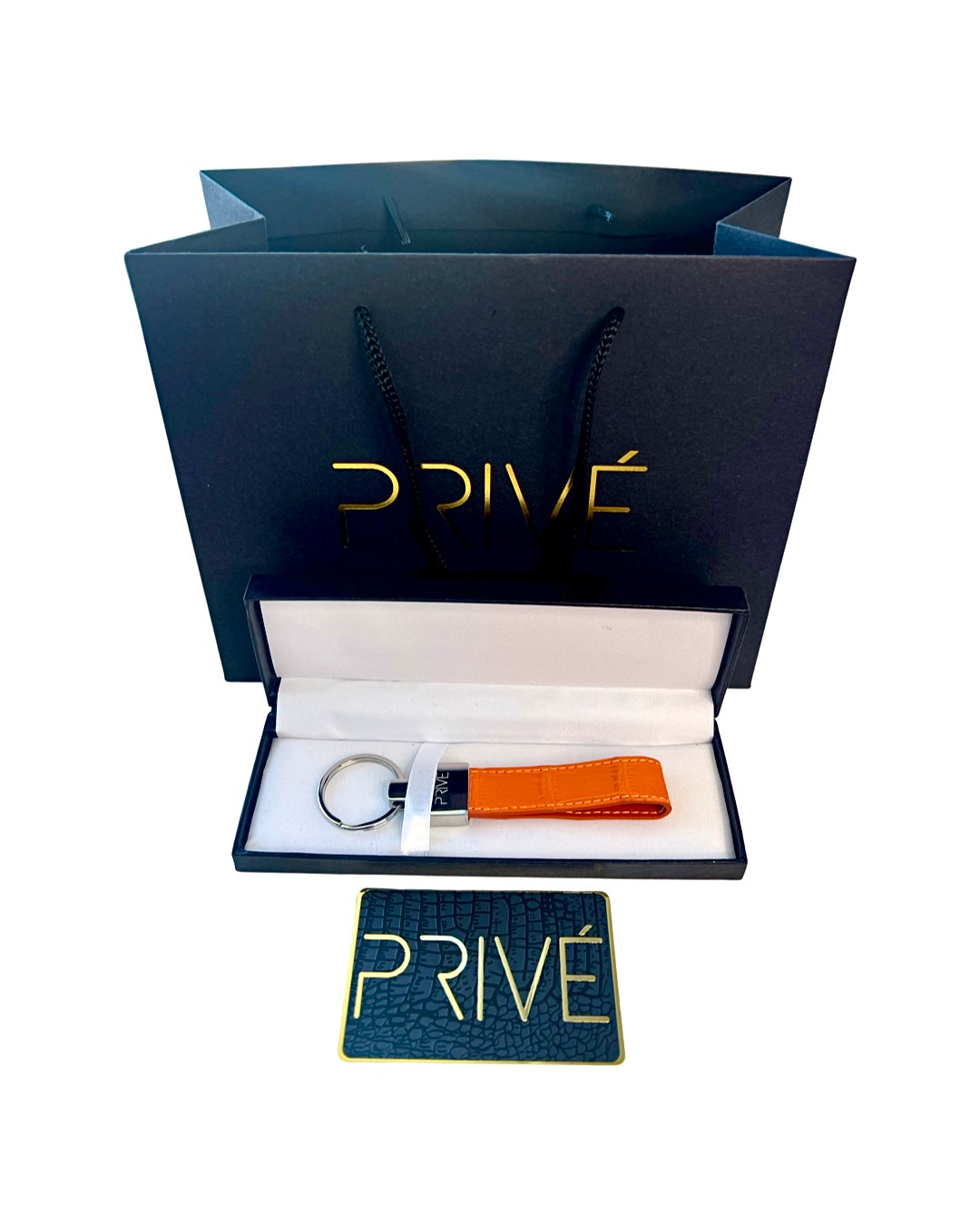 The limited edition keychain is a versatile accessory that can be used to attach on a pouch, keys, handbag and denim. These handmade luxury accessories are made of genuine crocodile which makes each item unique due to the variation of crocodile scale pattern on the leather. The metal is made of stainless steel with the gold model plated in 18k gold. The stitching is monotone to the colour offered. Each colour is limited to 99 pieces which is uniquely numbered via engraving. PRIVÉ logo engraved on the front, limited edition number marking on the back and leather stamped on the inside. Made in Italy.