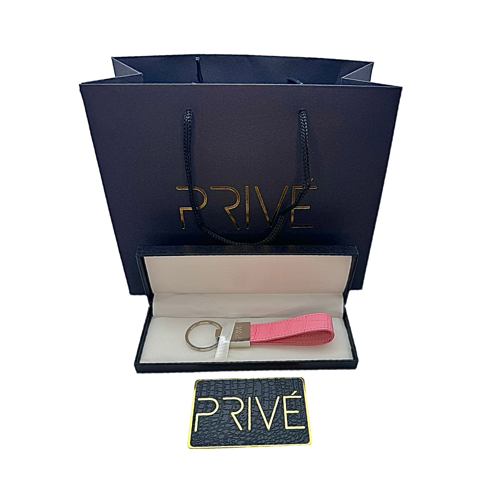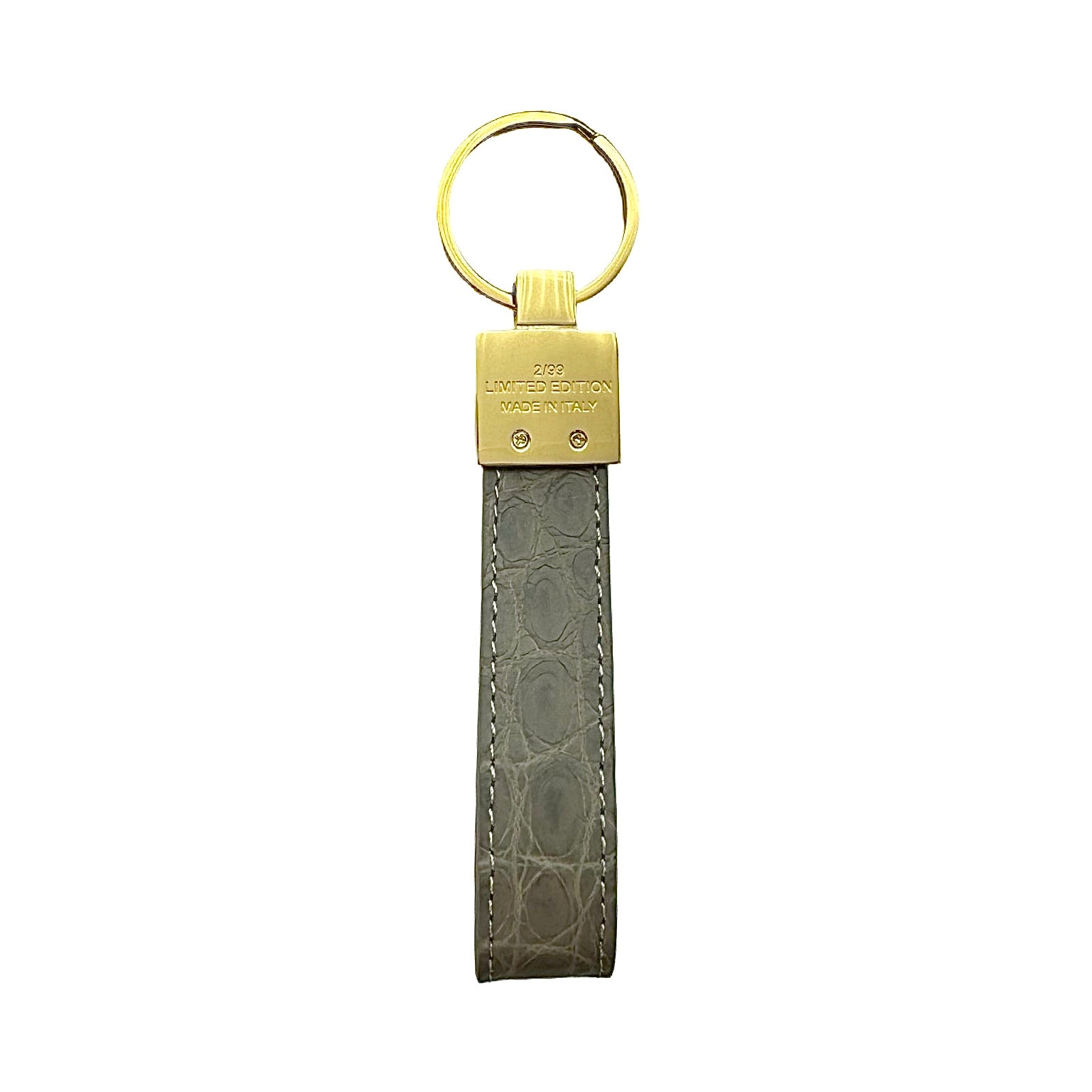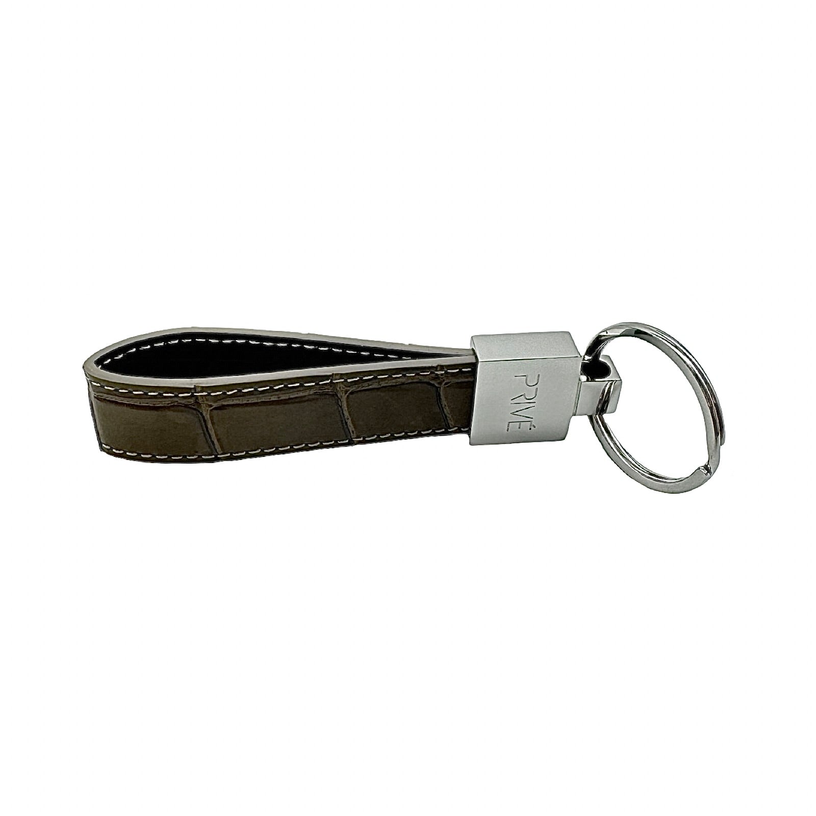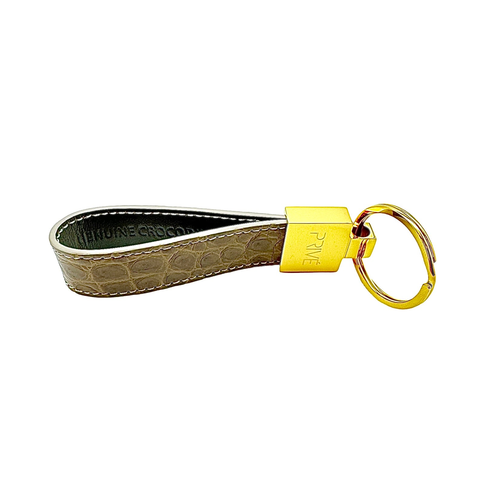 The limited edition keychain is a versatile accessory that can be used to attach on a pouch, keys, handbag and denim. These handmade luxury accessories are made of genuine crocodile which makes each item unique due to the variation of crocodile scale pattern on the leather. The metal is made of stainless steel with the gold model plated in 18k gold. The stitching is monotone to the colour offered. Each colour is limited to 99 pieces which is uniquely numbered via engraving. PRIVÉ logo engraved on the front, limited edition number marking on the back and leather stamped on the inside. Made in Italy.