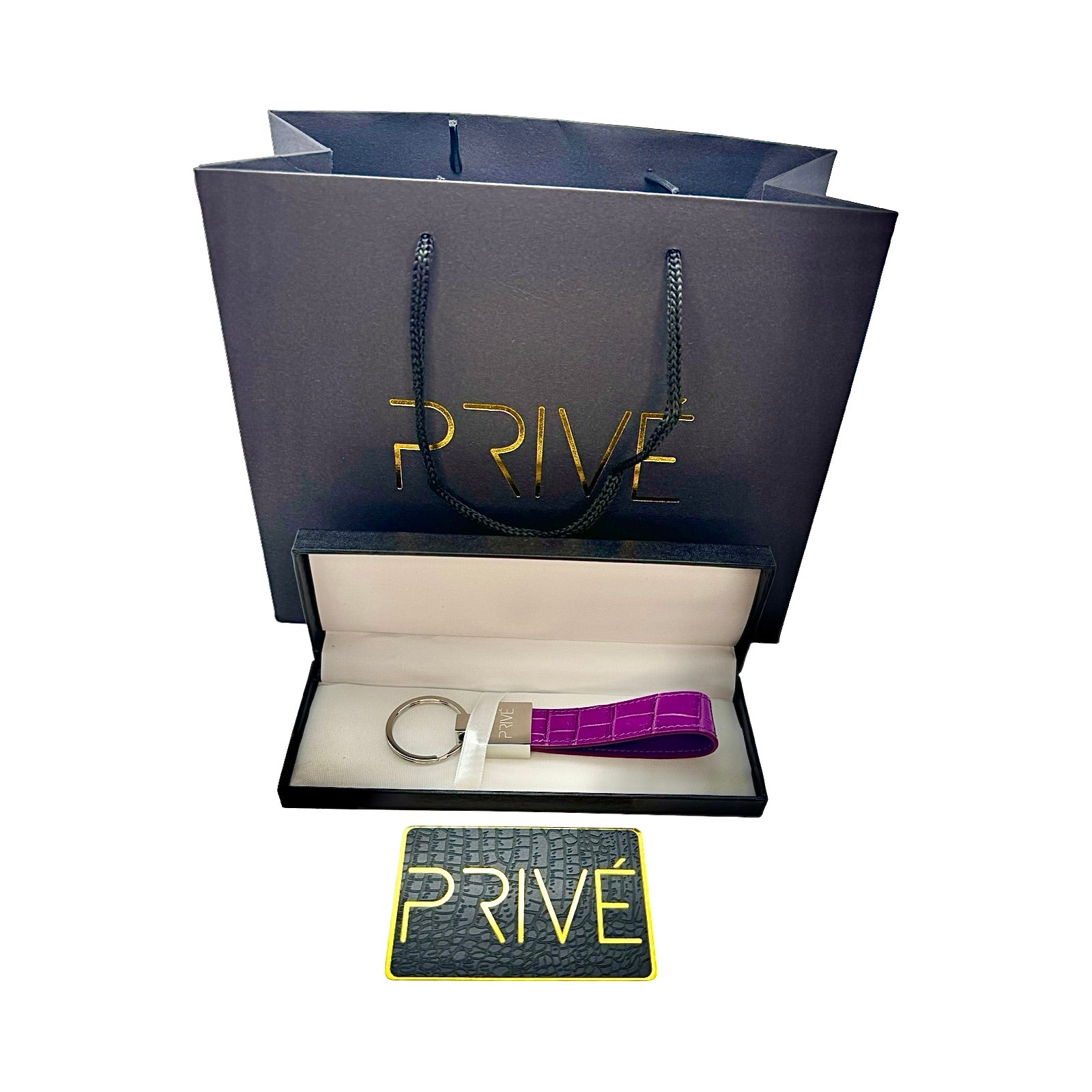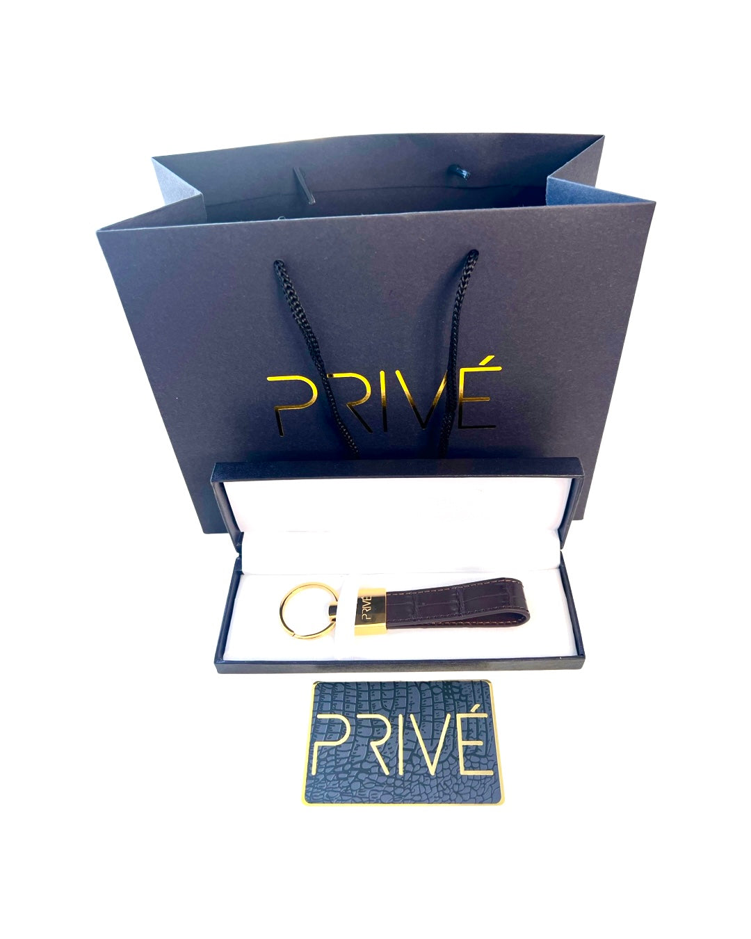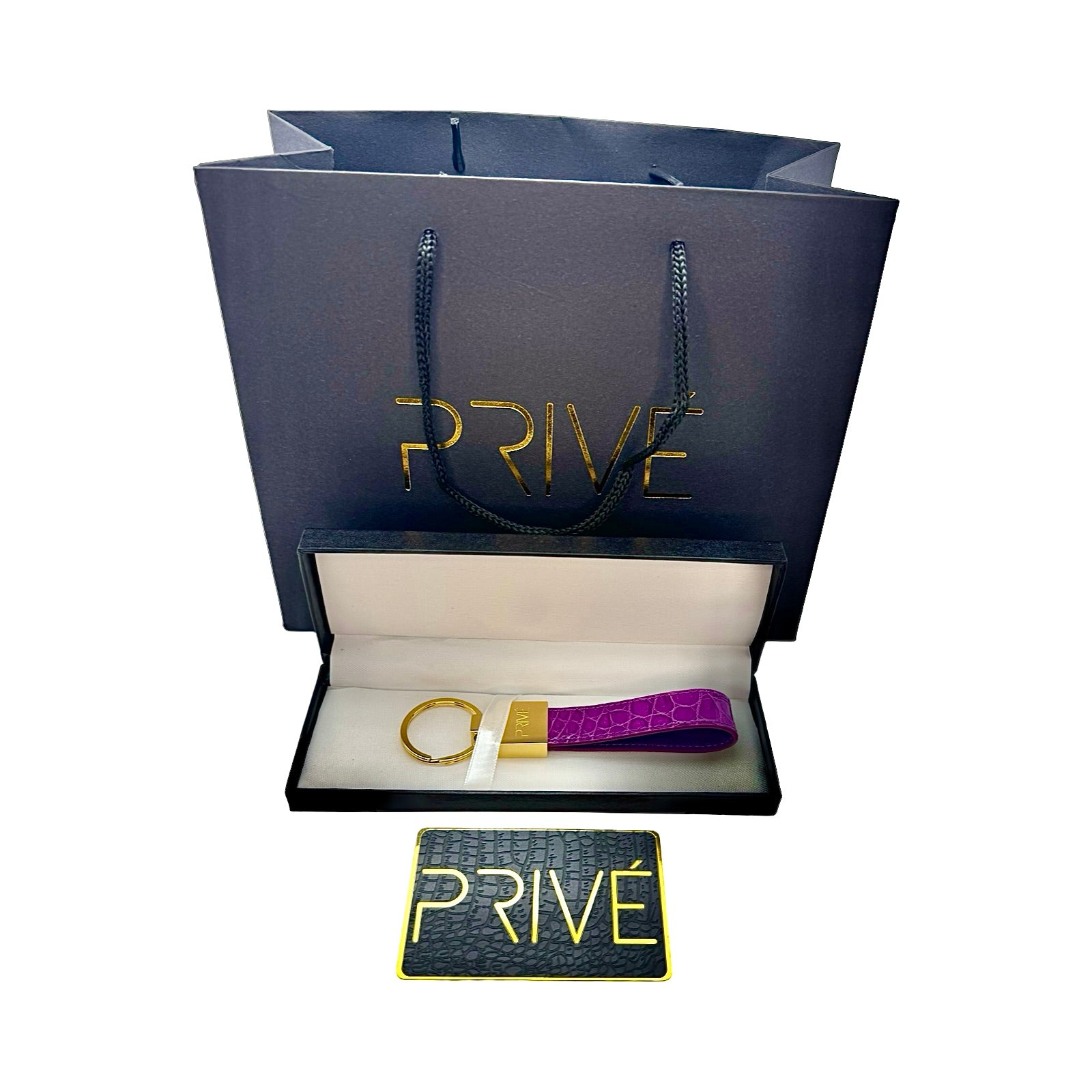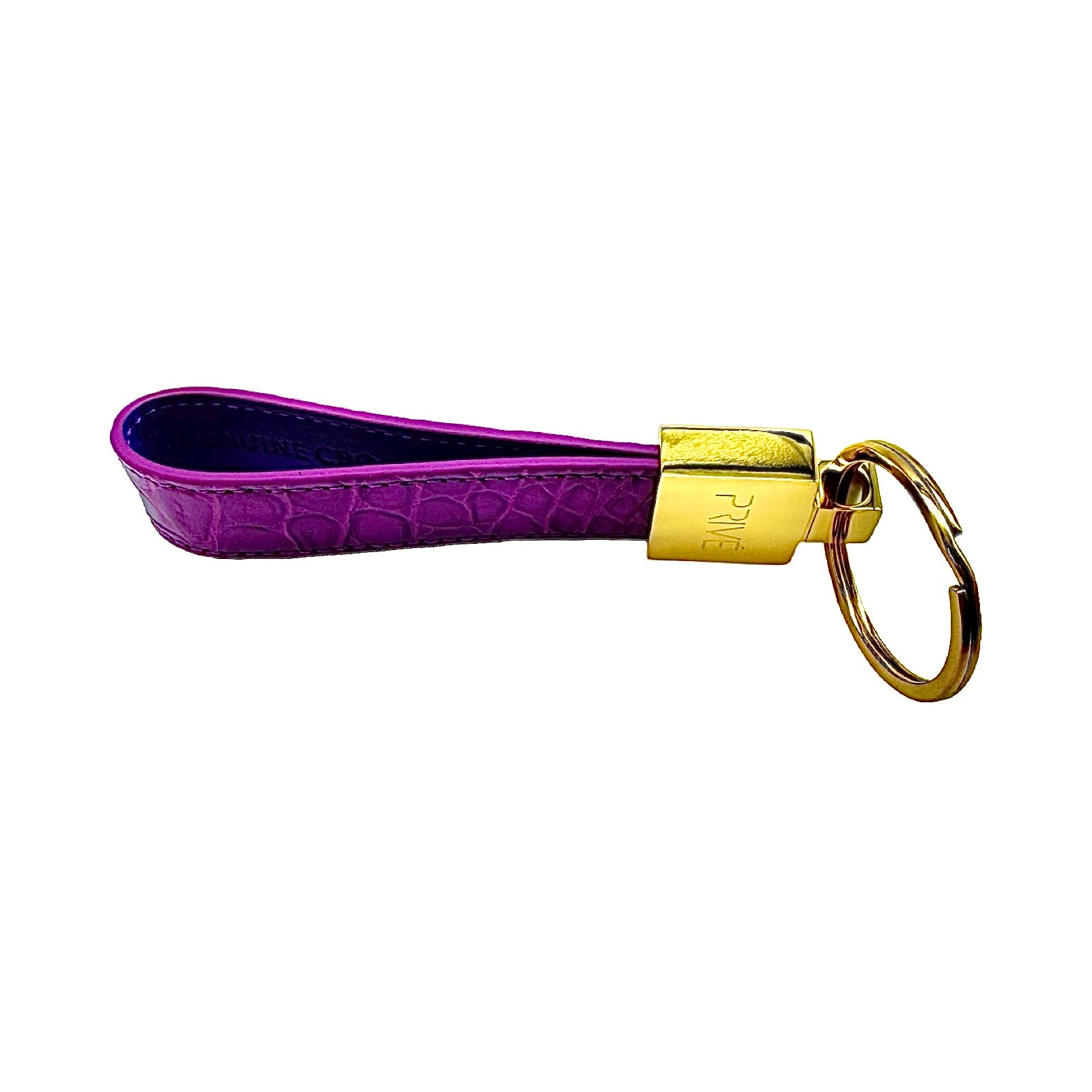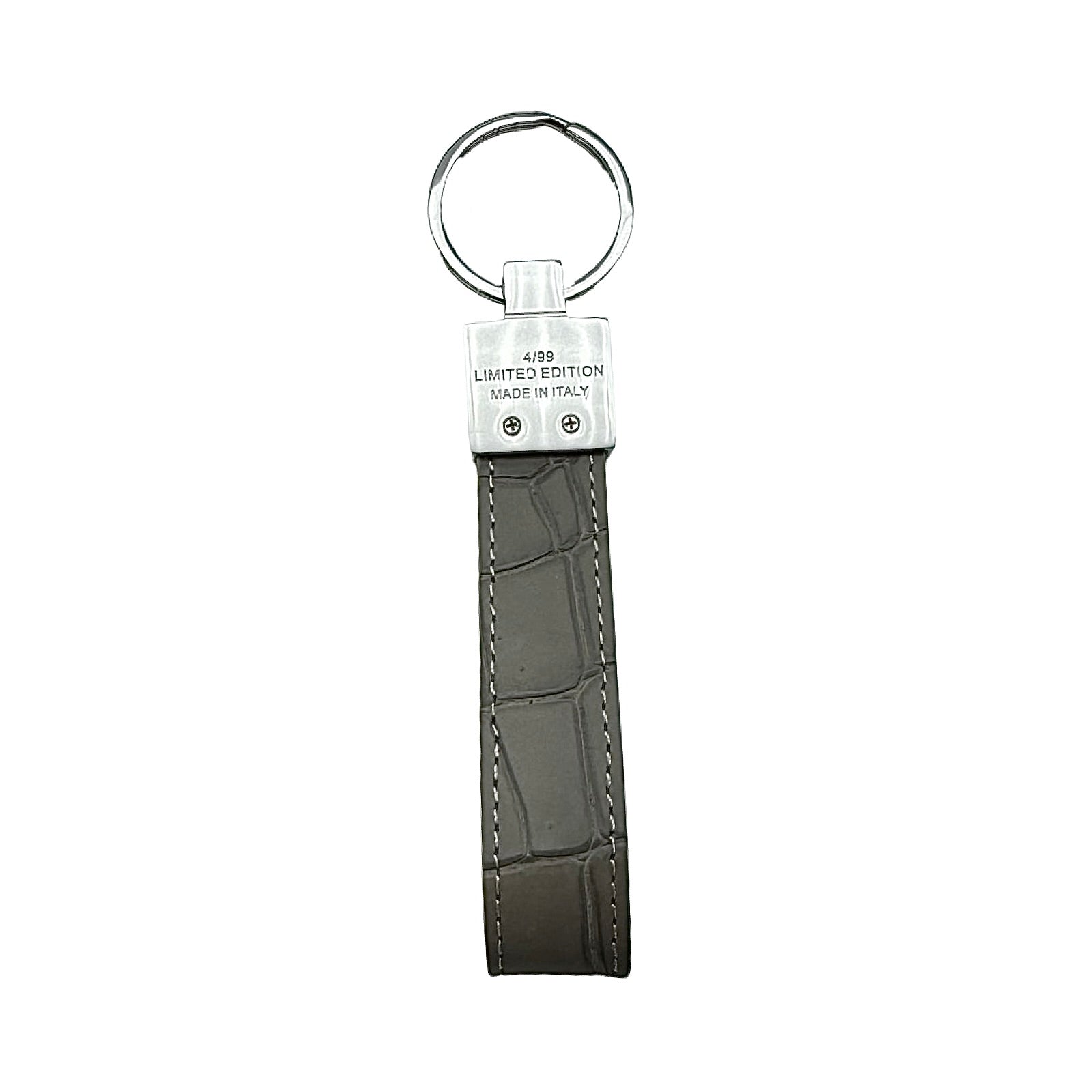 The limited edition keychain is a versatile accessory that can be used to attach on a pouch, keys, handbag and denim. These handmade luxury accessories are made of genuine crocodile which makes each item unique due to the variation of crocodile scale pattern on the leather. The metal is made of stainless steel with the gold model plated in 18k gold. The stitching is monotone to the colour offered. Each colour is limited to 99 pieces which is uniquely numbered via engraving. PRIVÉ logo engraved on the front, limited edition number marking on the back and leather stamped on the inside. Made in Italy.