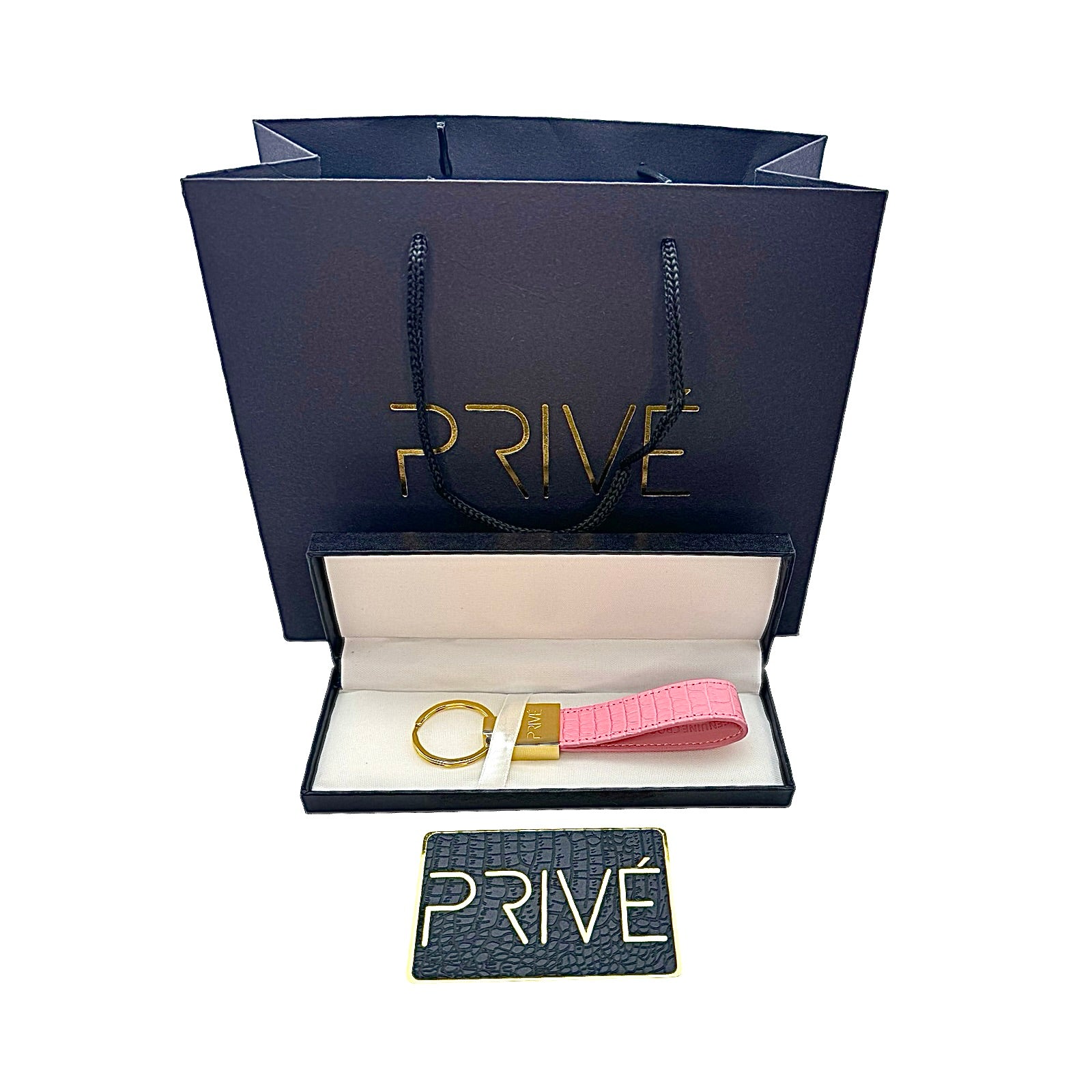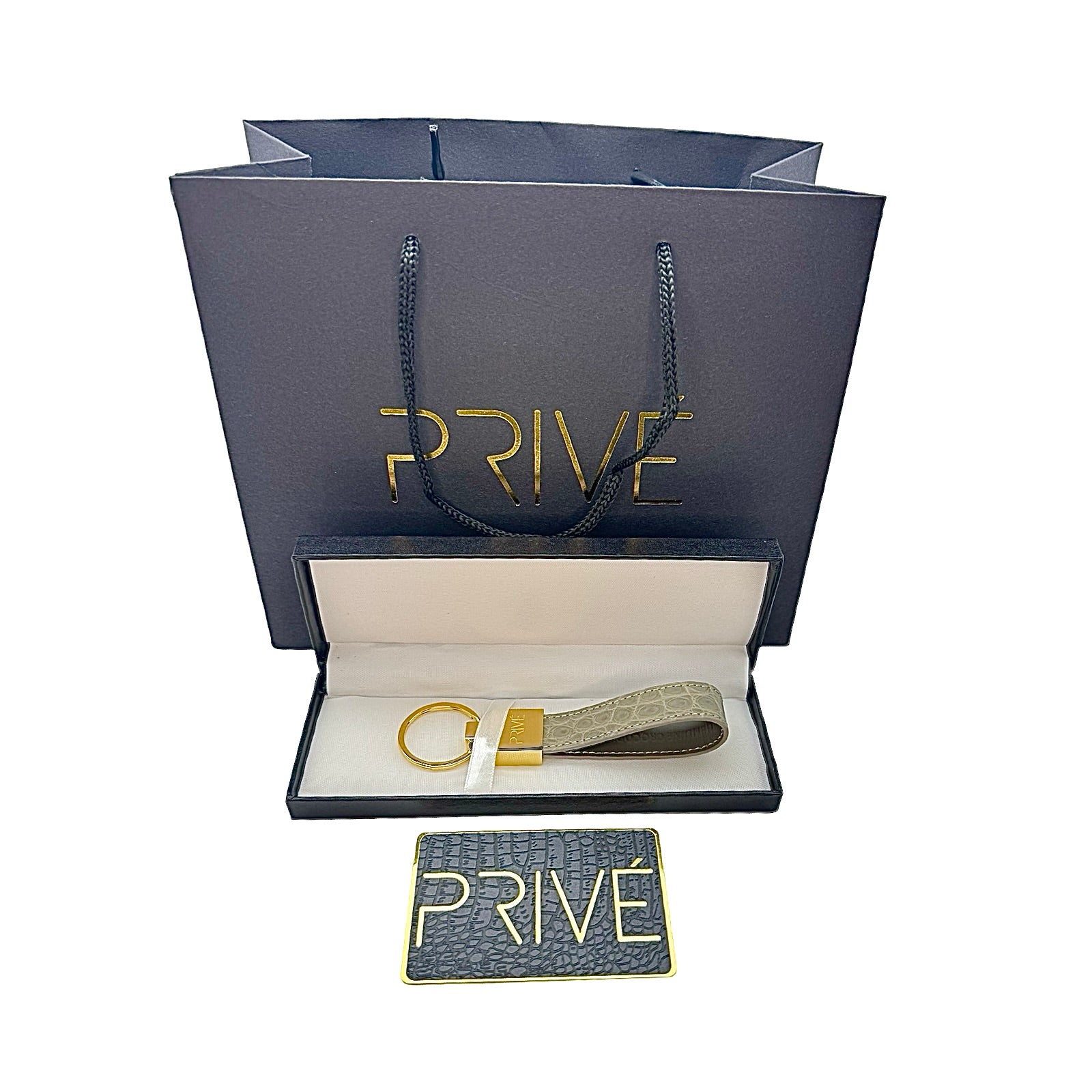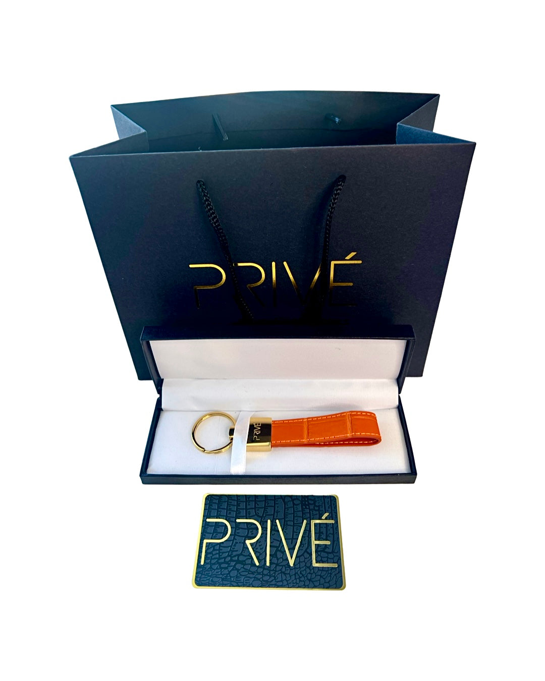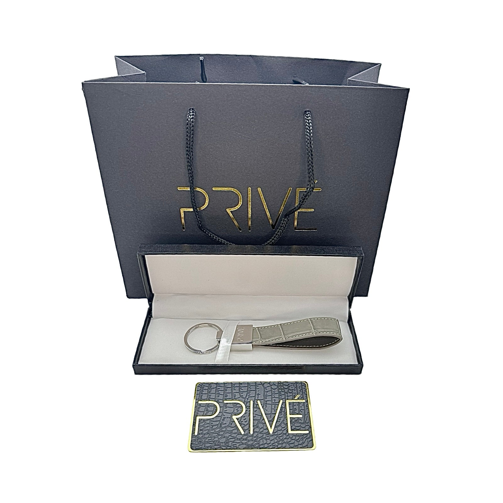 The limited edition keychain is a versatile accessory that can be used to attach on a pouch, keys, handbag and denim. These handmade luxury accessories are made of genuine crocodile which makes each item unique due to the variation of crocodile scale pattern on the leather. The metal is made of stainless steel with the gold model plated in 18k gold. The stitching is monotone to the colour offered. Each colour is limited to 99 pieces which is uniquely numbered via engraving. PRIVÉ logo engraved on the front, limited edition number marking on the back and leather stamped on the inside. Made in Italy.